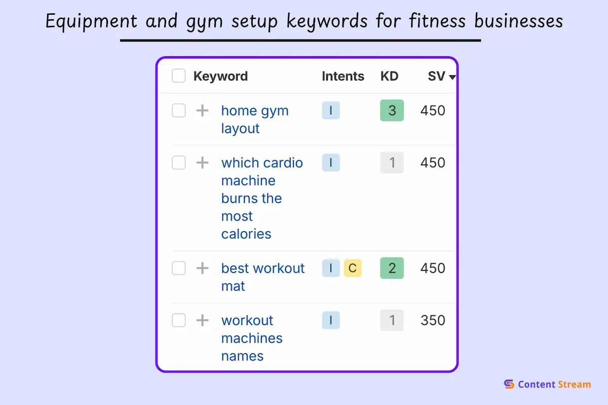 Or, skip the research and use our curated list of 1,000+ low difficulty gym and fitness keywords below.