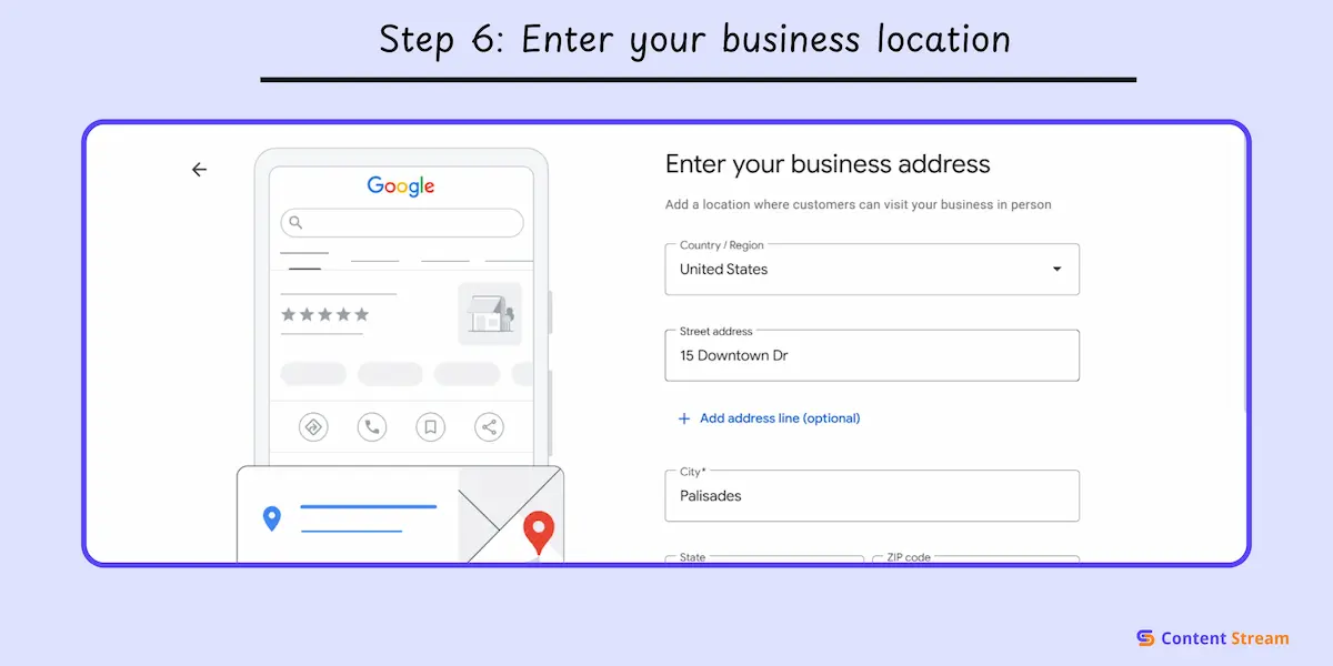 Google will ask for your business address. This is where your customers will find you, so accuracy matters.