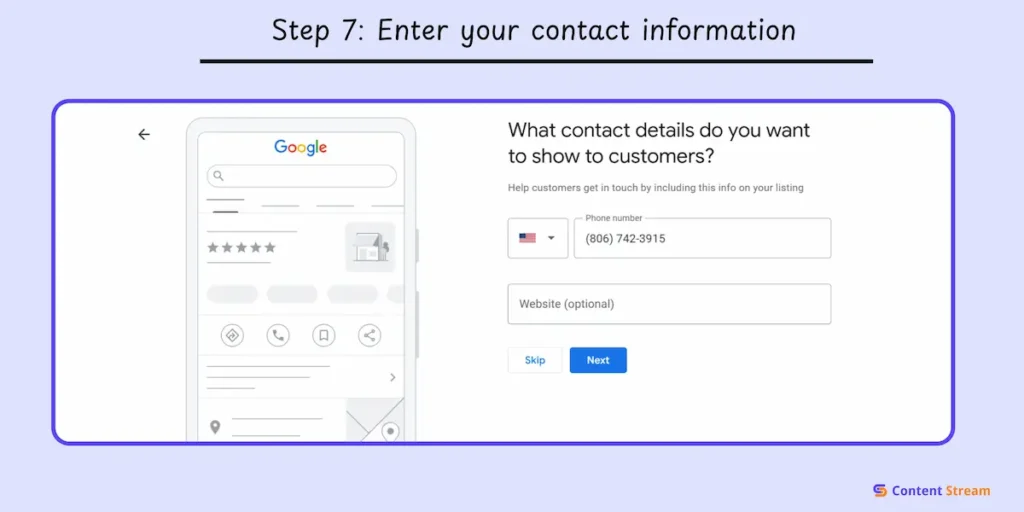 Google will ask for a phone number where customers can reach your business. It will show up in your profile. Google may also use it to reach you during the verification process.