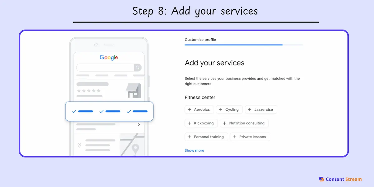 Google will prompt you to add the services your business offers. This helps customers understand what you do at a glance and improves your visibility for service-specific searches.