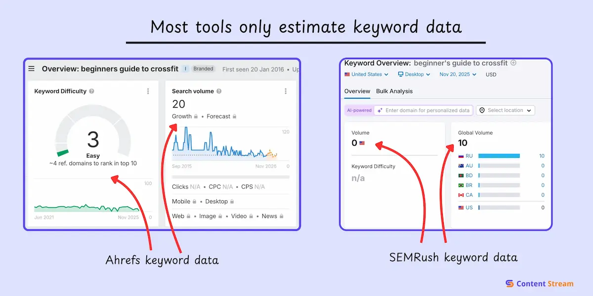 SEO tip: Most tools only give you estimates so don’t take their word as gospel. Simply use it as a range to find what’s potentially easy for you to rank for.