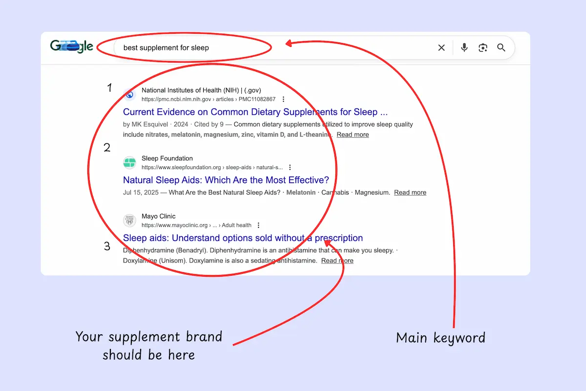 The supplement market is booming (projected to surpass $414B by 2033), which means more brands, more content, and tougher SERPs. Your competitors with large, deep pockets are investing heavily in SEO, making it harder than ever for smaller and/or newer brands to show up.