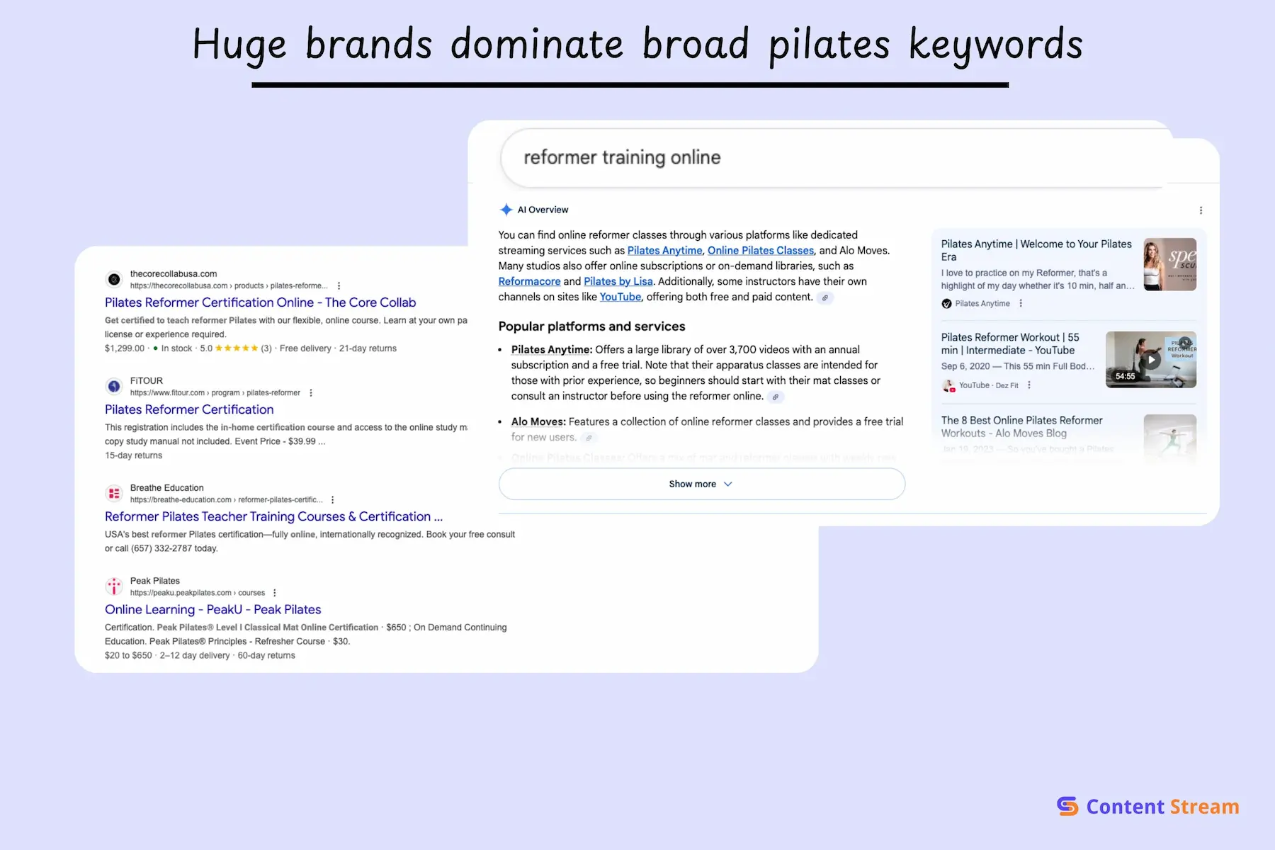 First, there’s a smaller commercial market. Fewer large advertisers are bidding on Pilates keywords compared to general fitness, supplements, or gym equipment. Club Pilates and a handful of reformer brands don’t create the same bidding wars you see with yoga mats or protein powder.